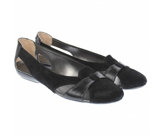 Balerini dama casual, din piele naturala intoarsa, combinata cu piele box