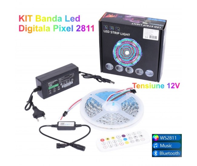 Banda led de cea mai noua tehnologie digital pixel WS2811 cu 60 de led 5050 RGBIC pe 1m si 300 leduri la 5m.