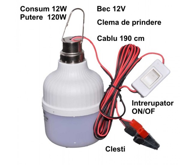 Bec 12V cu Led 12W/Clesti + Intrerupator