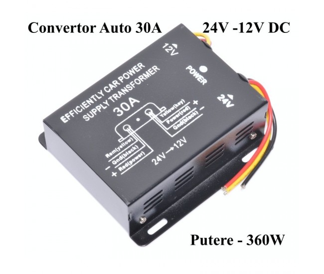 1 x Convertor Auto de Tensiune 24V-12V DC/30A