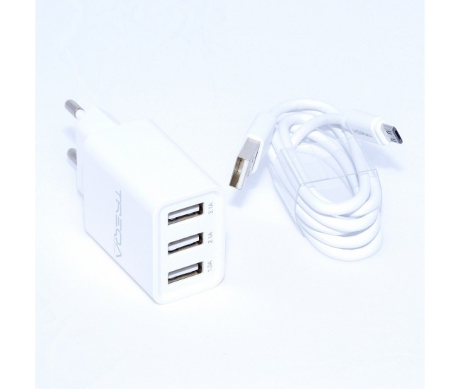 Incarcator Retea - 3 x USB / 3,1A + Cablu Micro USB , TREQA