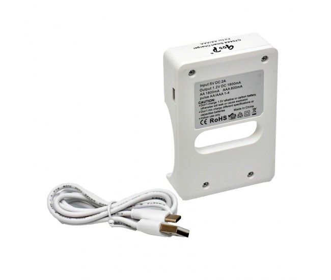 Acest tip de incarcator de dimensiuni reduse poate incarca simultan 4*AA R6 sau 4*AAA R3