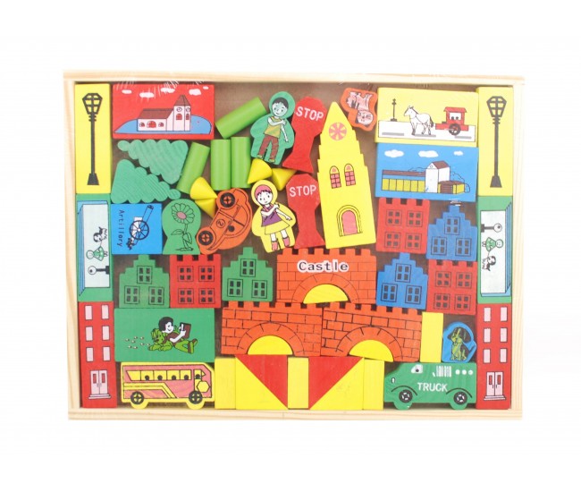 Cuburi din lemn pentru copii cu forme geometrice, figurine
