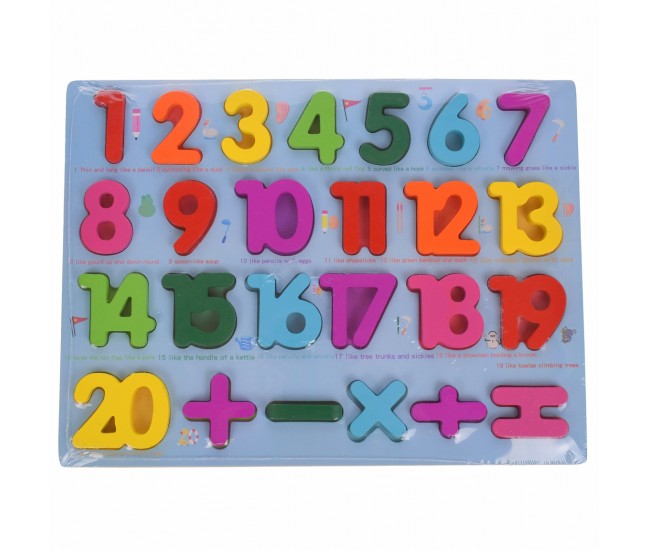 Puzzle de jucarie, potrivire dimensiuni si numere, din lemn, albastru