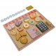 Tablita din lemn, cu figurine tip produse de patiserie, calculator, monede - 3315070