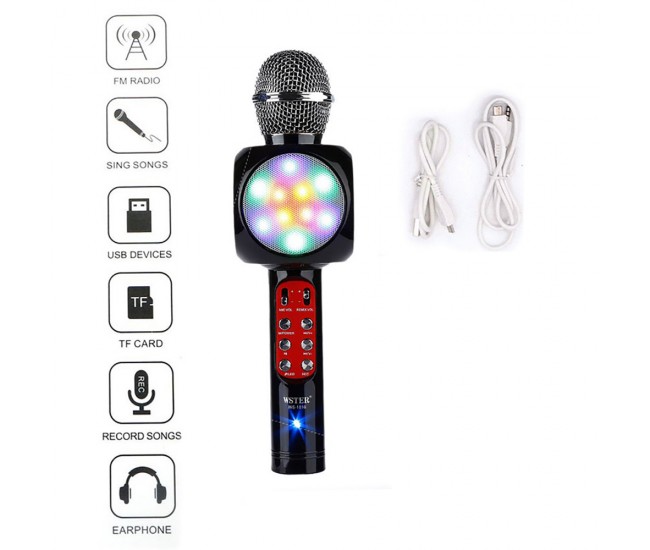 Microfon Karaoke Wireless cu lumini, Inregistrare si USB, Negru - WS1816