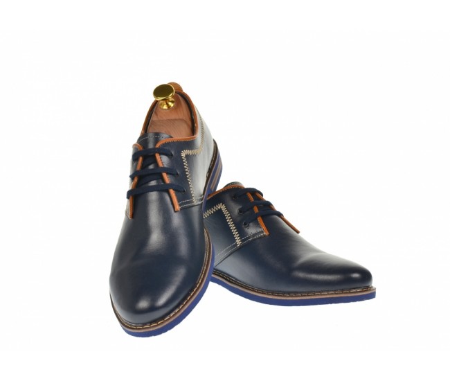 Pantofi barbati casual din piele naturala bleumarin si maro - 501MBLM
