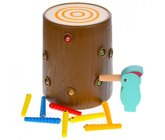 Jucarie Ciocanitoarea si Busteanul, cu viermisori magnetici, multicolor