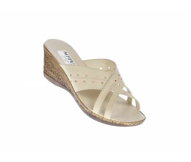 Papuci dama de vara cu platforme de 5 cm, din piele naturala, PAP5BEJBOX