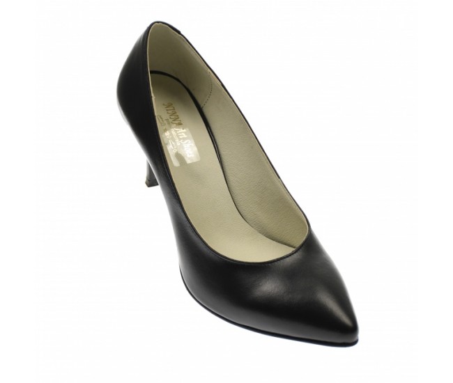 OFERTA MARIMEA 38 - Pantofi stiletto dama, negri, din piele naturala box , toc 8 cm - LNA63N