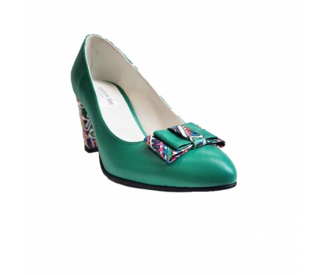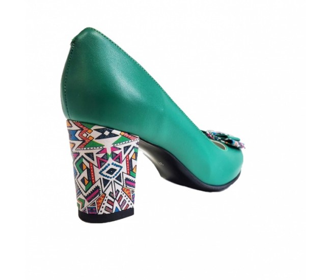 Pantofi eleganti dama, verzi, mozaic, din piele naturala box, toc 6 cm - NA41V